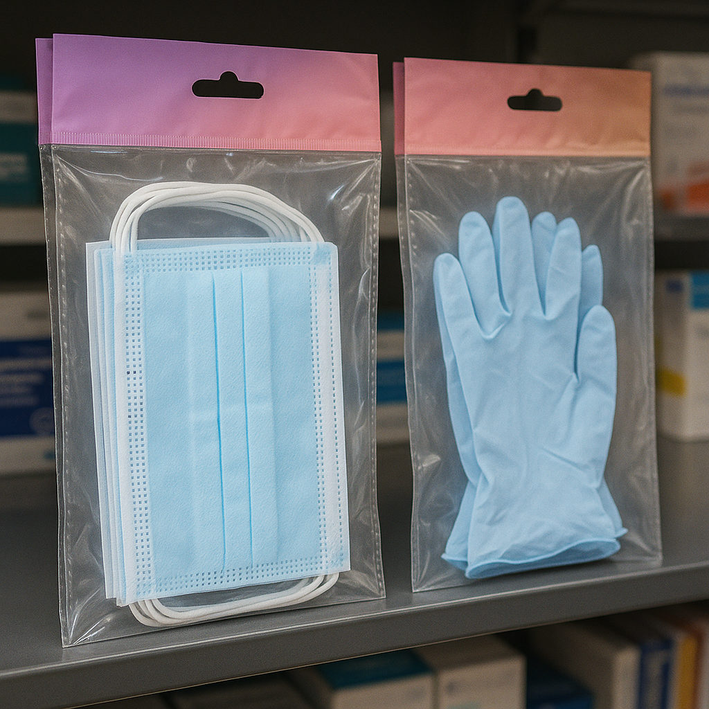 Используется для упаковки одноразовых масок, перчаток, шприцев, медицинских наборов. Подходит для фасовки стерильных и нестерильных изделий. |